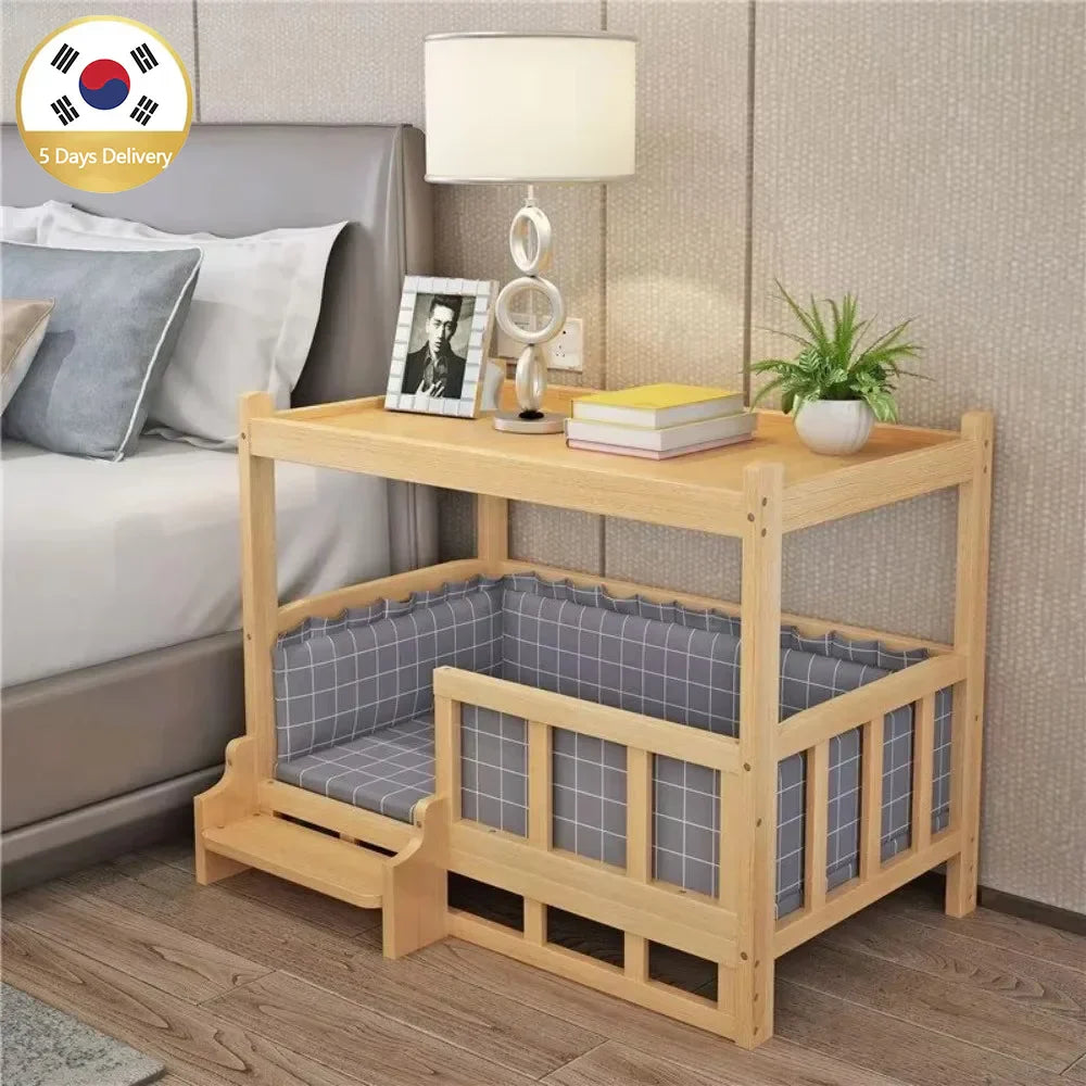 Solid Wood Pet Bed – Polished Kennel Nest for Dogs & Cats