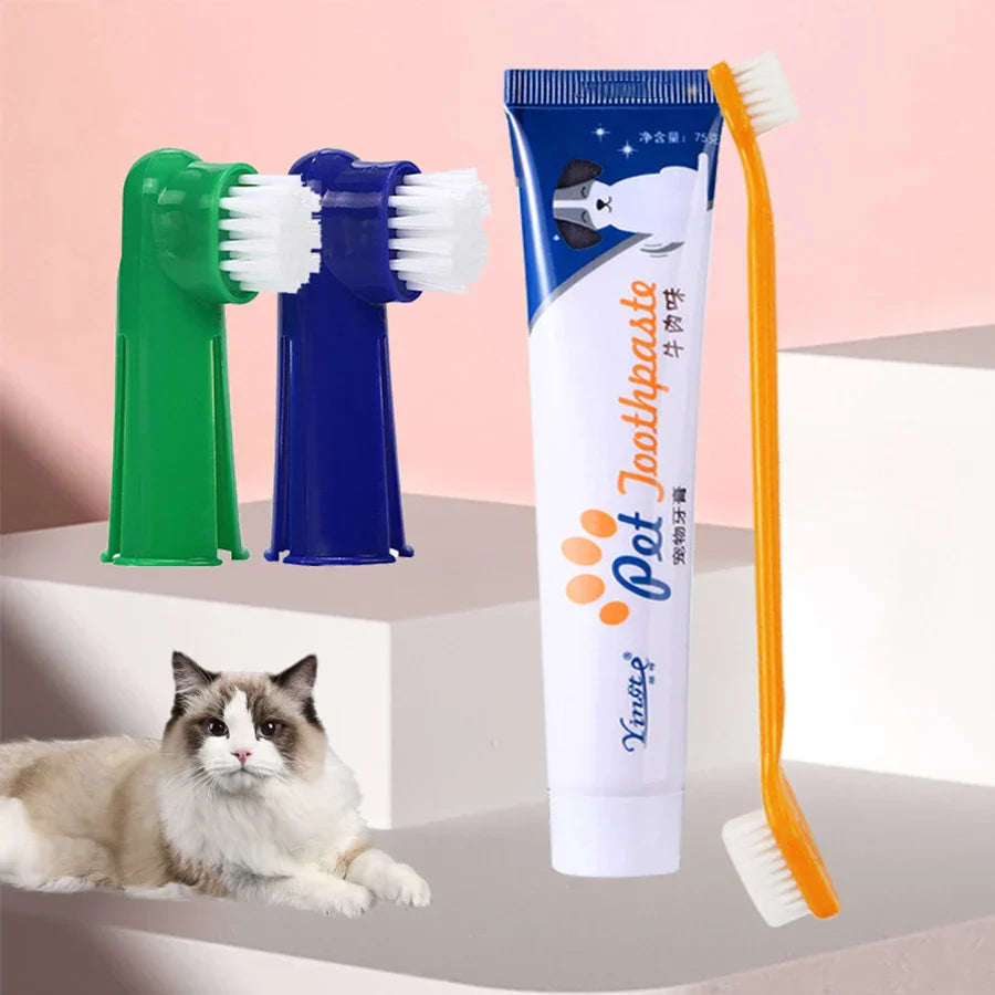 Pet Toothbrush Set – 4-Piece Dental Care Kit with Toothpaste for Dogs and Cats