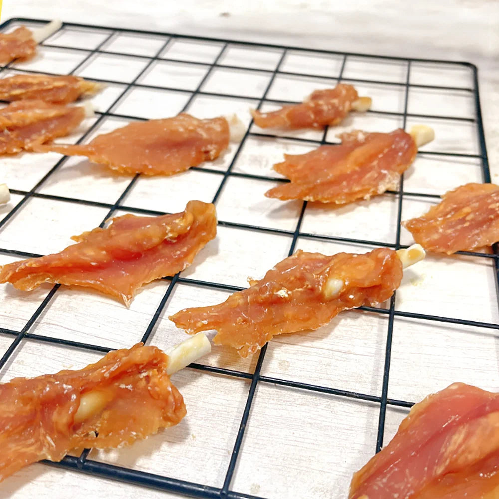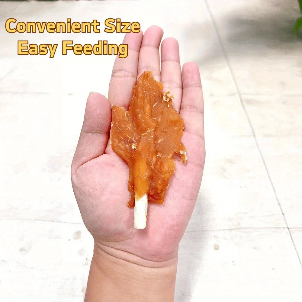 Reward your pup with these rawhide chicken breast treats made from all-natural ingredients — healthy, high in protein, and easy to digest for everyday snacking.