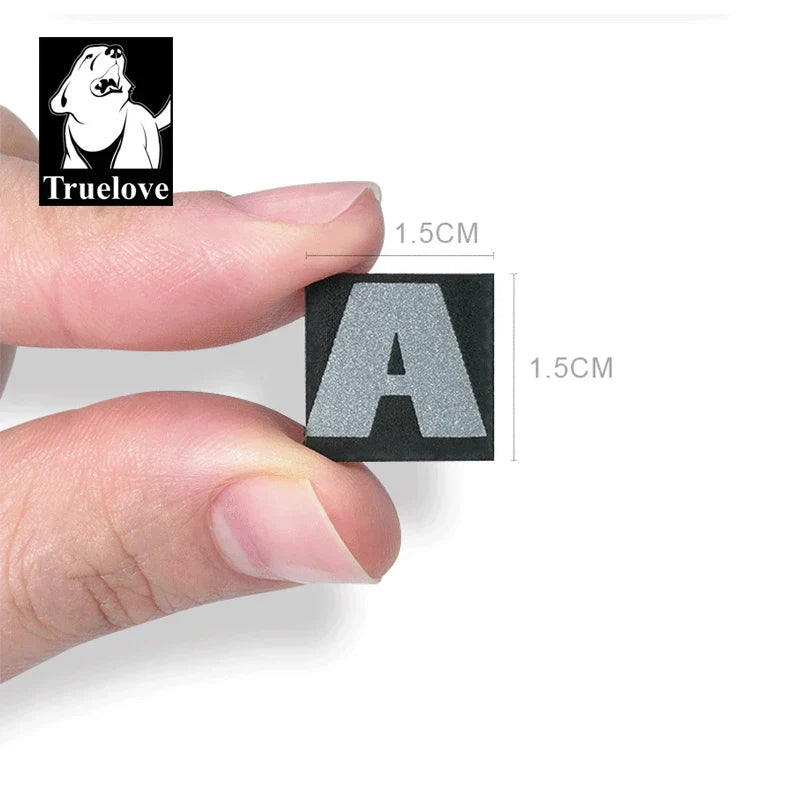 Customize your pet’s harness, collar, or saddle bag with the Truelove hook and loop fastener patch — reflective, durable, and easy to personalize with numbers or letters.