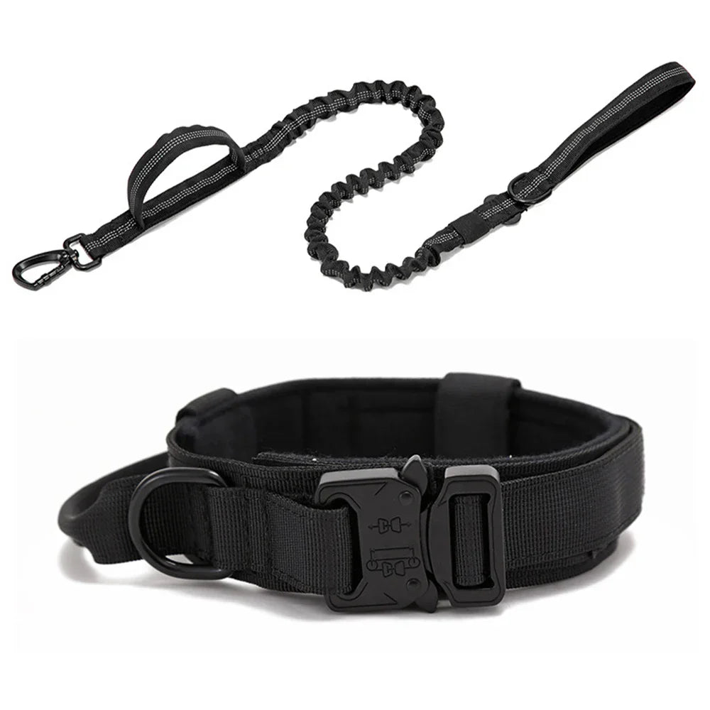 Durable Nylon Dog Collar & Leash Set – Reflective Tactical Training for Large Dogs