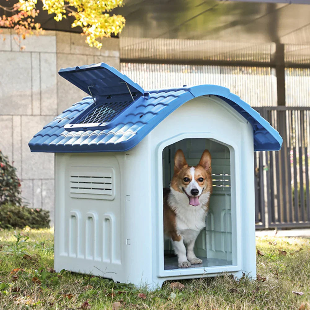 Outdoor Large Plastic Dog House – Water-Resistant with Adjustable Skylight